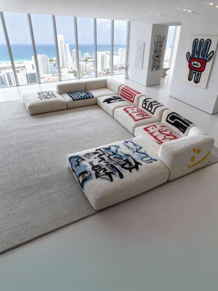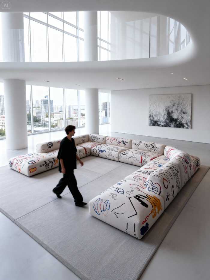 A coleção mais recente reforça esse posicionamento ao apresentar peças com formas marcantes, superfícies gráficas e uma presença estética intencional. Cada sofá é concebido como um objeto que dialoga com o ambiente ao redor, criando composições visuais que ultrapassam a função tradicional do mobiliário. Nesse contexto, o design deixa de ser apenas utilitário e passa a atuar como linguagem.