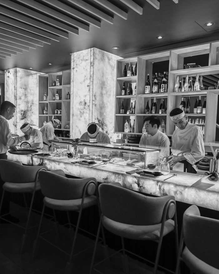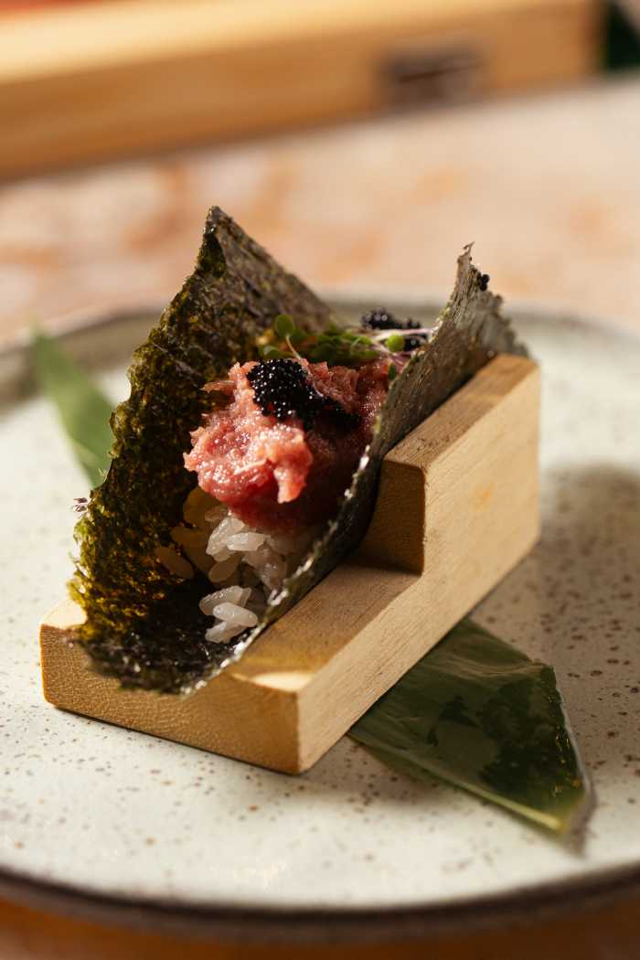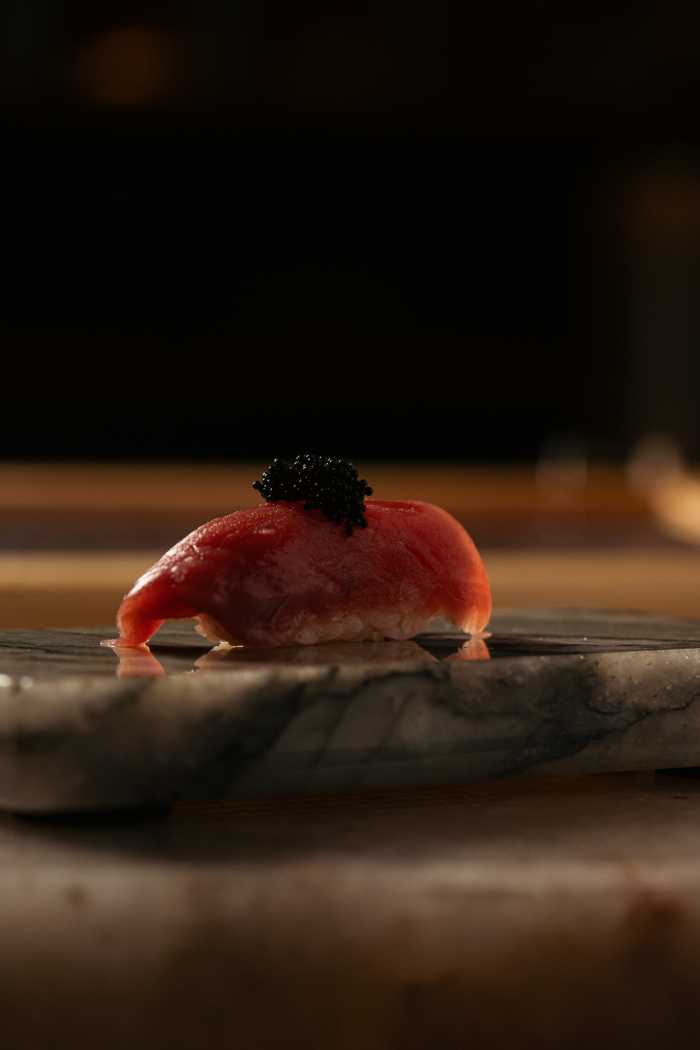 O ambiente acompanha a proposta gastronômica. Elegante e versátil, o espaço acomoda até 120 pessoas e oferece desde mesas para encontros mais reservados até o balcão, onde a experiência ganha outra dimensão. É ali que o omakase se revela em sua forma mais autêntica: uma sequência guiada pelo chef, construída a partir da sazonalidade e da excelência dos ingredientes.